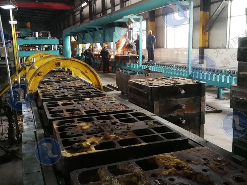 无锡瑞成铸造机械设备公司设计制造的大规格铁模覆砂铸造生产线,主要针对船用车用发动机曲轴、载重车桥壳、发动机缸体等较大铸件生产而开发的,促进了铁模覆砂铸造应用优先域的拓展。主要特点是铁模的尺寸精度高和重量大,生产线设备刚性好,机械化程度高。