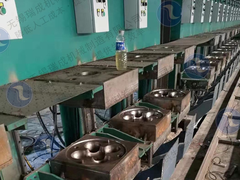 国内很多企业原用铁模覆砂工艺铸造奥贝磨球,效率低,产量跟不上; 无锡瑞成机械研发团队为奥贝磨球铸造企业量身定制了全自动金属型铸造自动线,大大提高了企业奥贝磨球的生产效率、提升了产品的合格率。