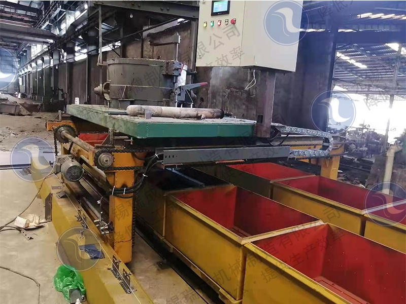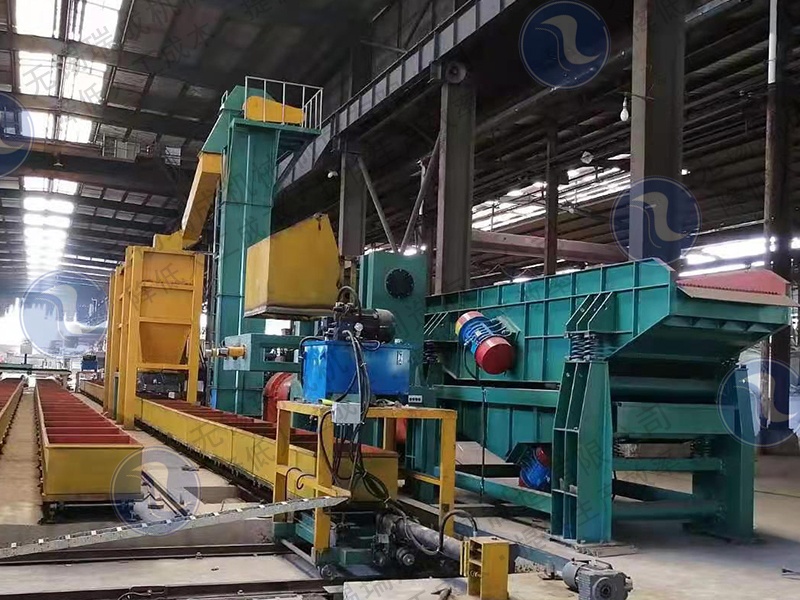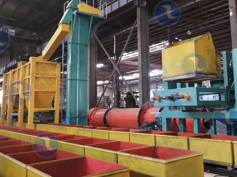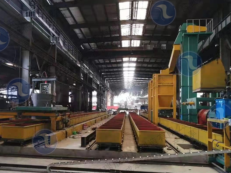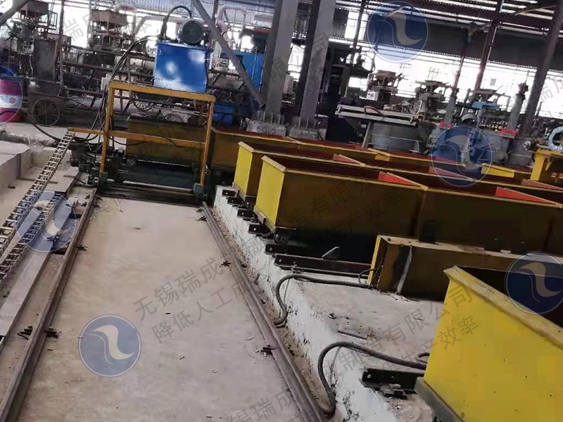 无锡瑞成机械设计制造的集装箱箱角覆膜砂壳型铸造线和视频,计划年产量达2万吨。流程:机械手自动抓芯放入浇注小车,砂库自动将钢丸填入小车,自动化浇注平台浇注钢水,振动落筛机分离集装箱箱角铸件、钢丸、覆膜砂;箱角铸件自然冷却,覆膜砂通过斗车取走,钢丸通过滚筒雾冷却设备冷却,并提升至砂库再次利用。